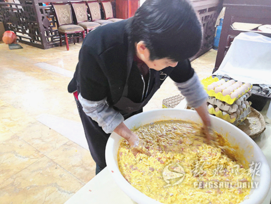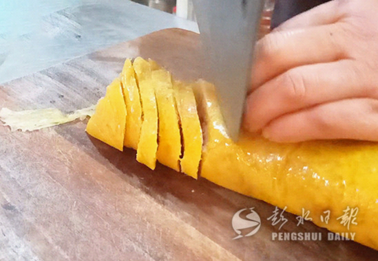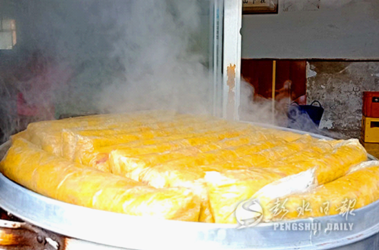 中國彭水網(wǎng)(全媒體記者 張茂玉 楊 靜 文/圖)三香,又叫包圓或卷子,是將五花肉、紅薯淀粉、土雞蛋等食材按一定比例蒸制而成。三香口感香嫩潤滑、美味可口,營養(yǎng)搭配合適,又因其易于保存、方便攜帶,成為了彭水人外出求學(xué)或打工時必帶的家鄉(xiāng)美食。