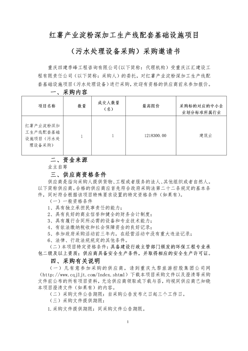 紅薯產(chǎn)業(yè)淀粉深加工生產(chǎn)線配套基礎(chǔ)設(shè)施項(xiàng)目 (污水處理設(shè)備采購)采購邀請(qǐng)書